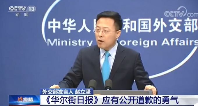 (2月24日,外交部发言人赵立坚质问:《华尔街日报》究竟谁来负责任?谁出来道歉?《华尔街日报》既然有骂人的嚣张,为什么没有道歉的勇气?)