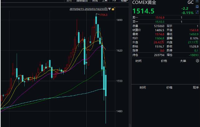 此前被認為是避險品種的黃金都在一路走跌。另外,油價也穩定暴跌,其中,NYMEX原油期貨收跌9.69%,報29美元/桶。