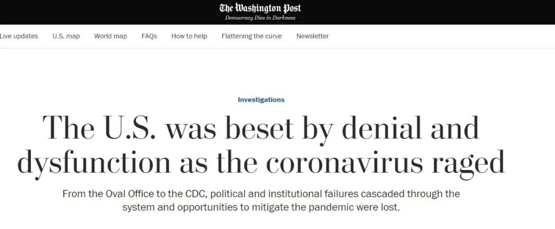 美国著名政治杂志《大西洋月刊》日前也发文,指出当前美国所遭遇的一切应该由美国领导人负责。《纽约时报》批评说,在美国,对疫情的反应在很大程度上“被政治算计所掩盖”。美国知名智库布鲁金斯学会在3月底发布长文,将美国疫情的大面积暴发归咎于美国政府的判断失误和不作为。