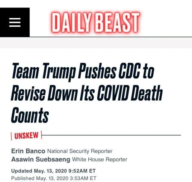 日前,美国政治新闻网站“每日野兽”爆料称,美国领导人和白宫疫情应对小组成员正在施压美国疾控中心与各州合作,改变他们计算新冠肺炎死亡病例的方式。在白宫压力之下,近来美国多个州公布的新冠肺炎病亡人数吊诡地出现下降。