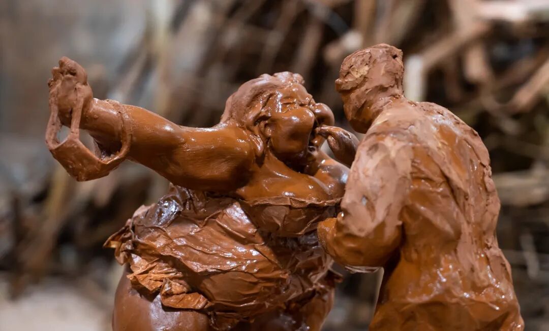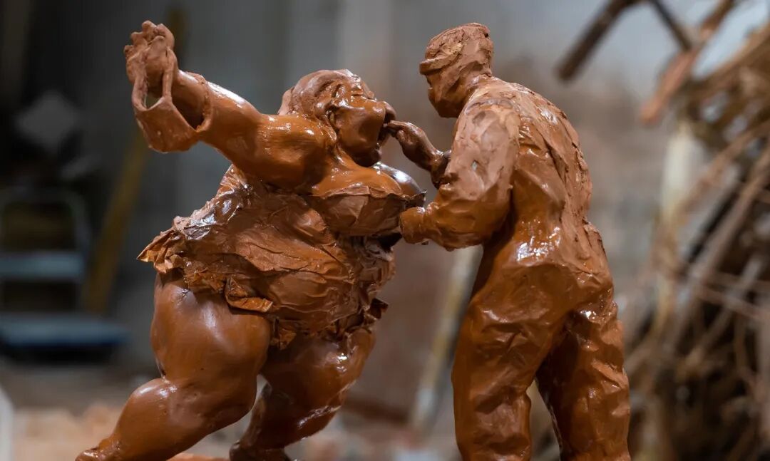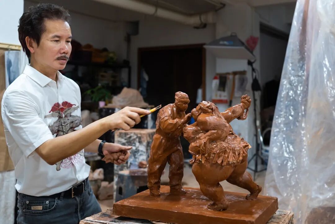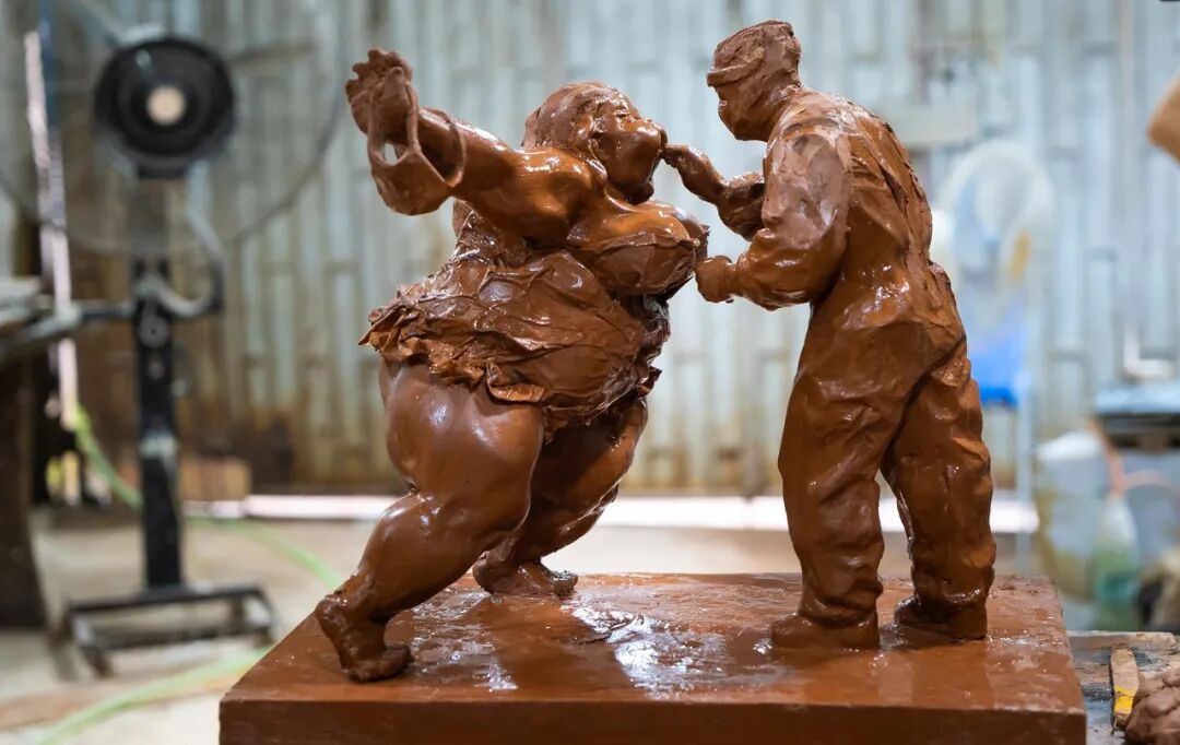 战斗仍在继续,英雄需要被歌颂,总有人用自己的方式温暖着这些逆行者们。许鸿飞在去年疫情期间连续创作了8件“抗疫”系列雕塑作品,广受关注。最近创作的两件“肥女”测核酸新作,则用雕塑的方式记录了这场新的战斗,歌颂在这次战斗中默默付出的英雄们。