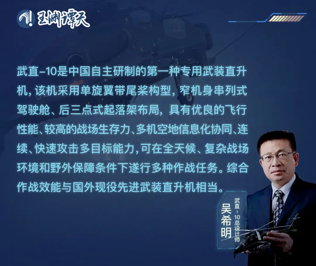 为了弄清楚武直-10的“秘密”,谭主找到了全世界最懂它的人——武直-10总设计师吴希明。他给谭主介绍道: