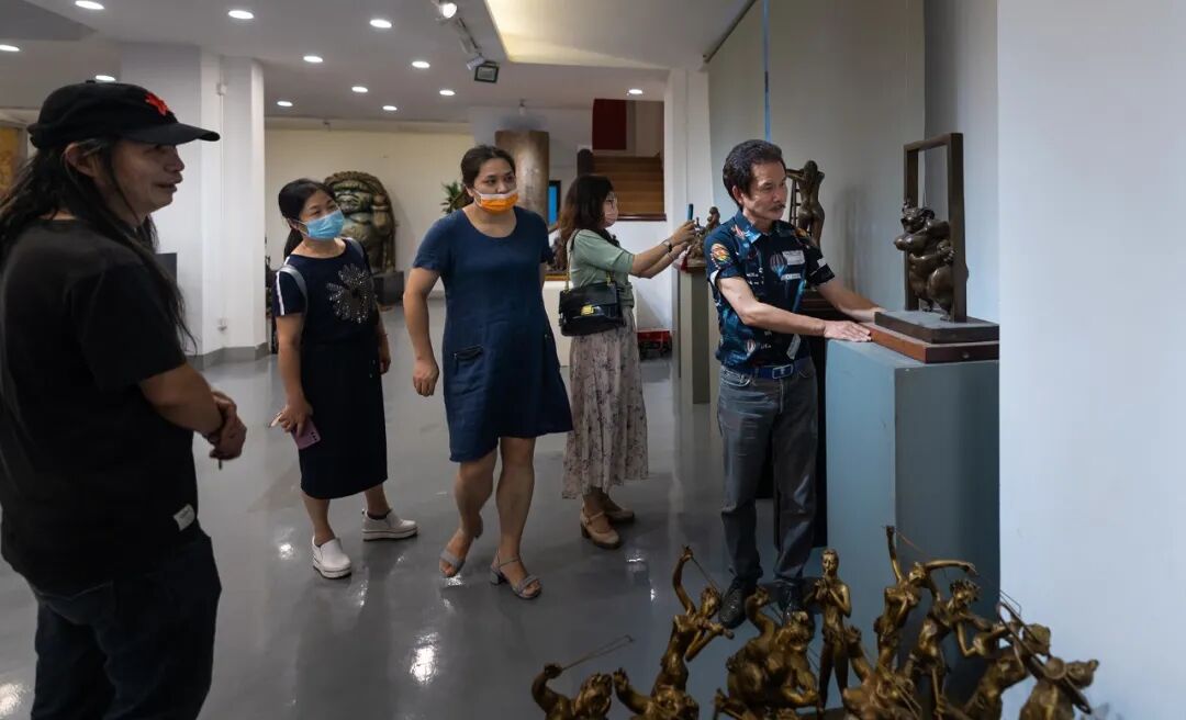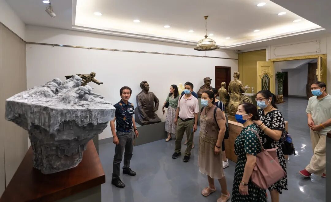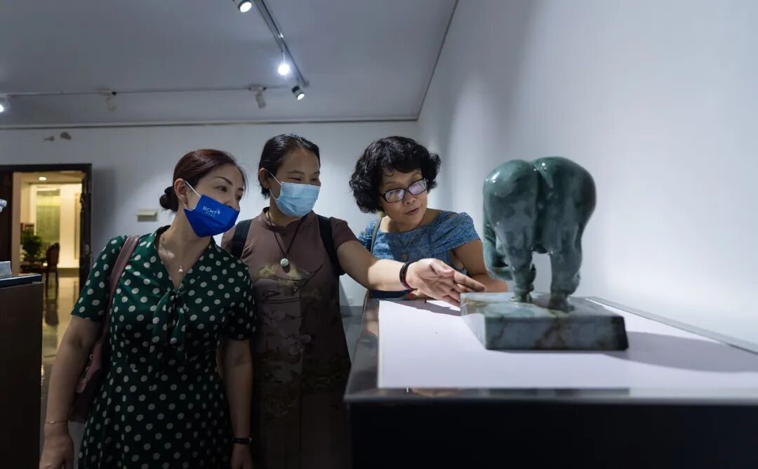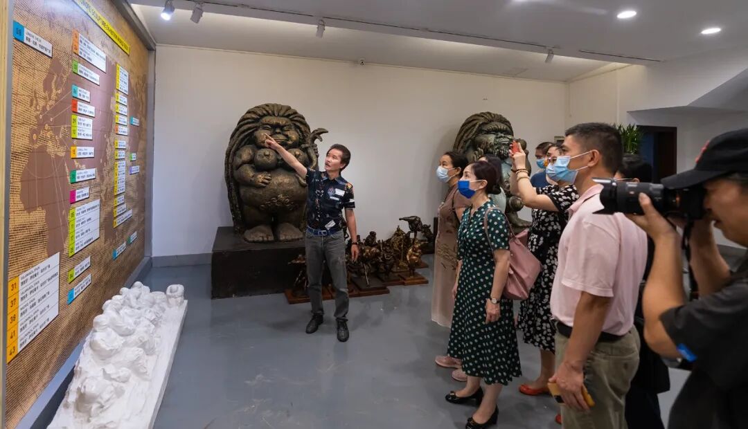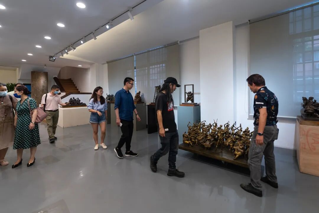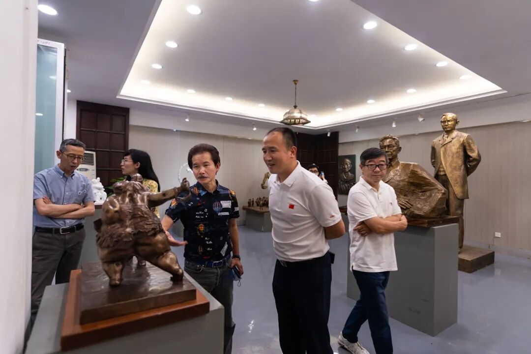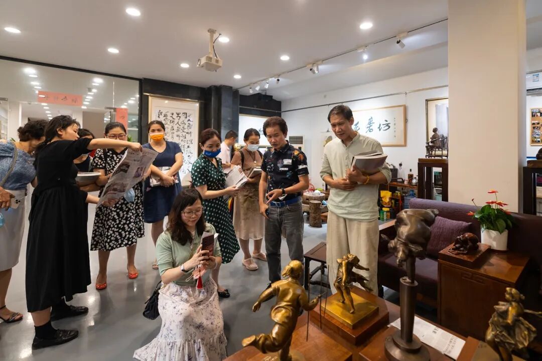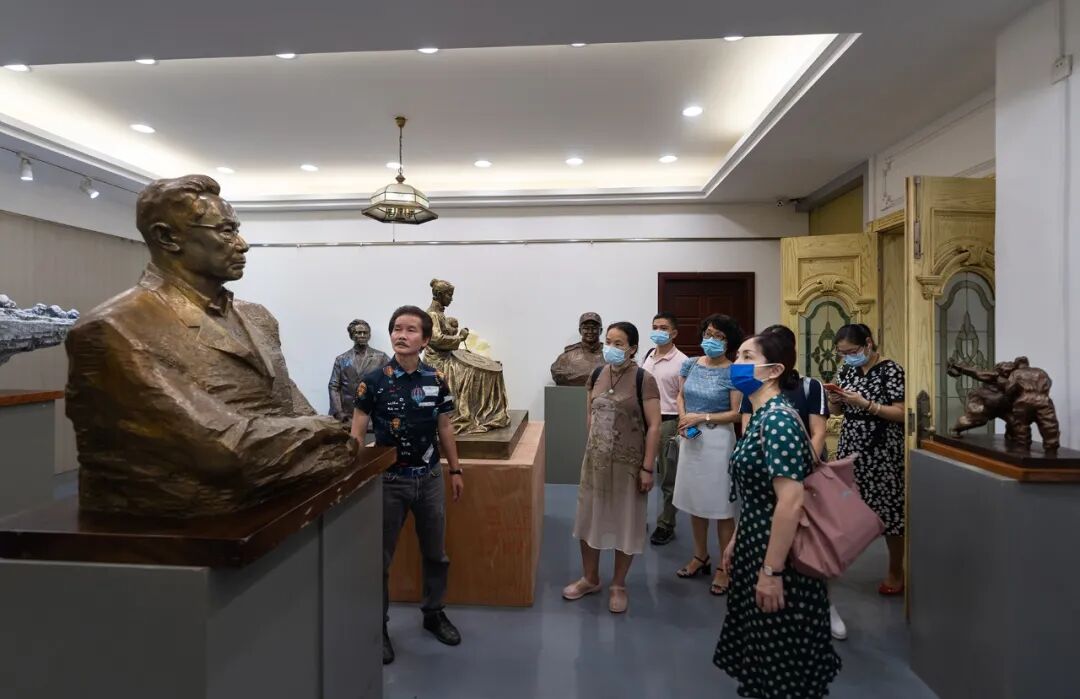 工作室内,好不热闹!文德路小学詹凯宁副校长带领艺术科的老师们正在细细品味陈列在展厅中的雕塑作品与黄永玉先生画作,在品鉴艺术作品中陶冶情操。