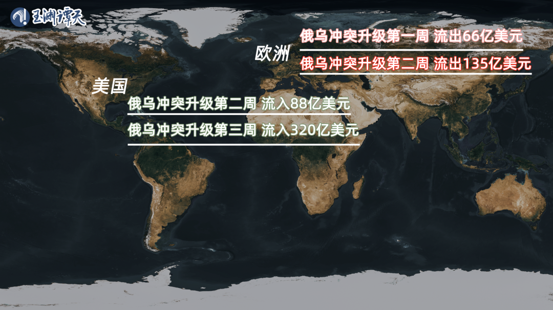 俄乌冲突升级后一个多月,有270多亿美元的资金,从欧洲股票基金市场流出。同时,仅仅是在俄乌冲突升级后的前三周里,就有400多亿美元的资金,流入美国。