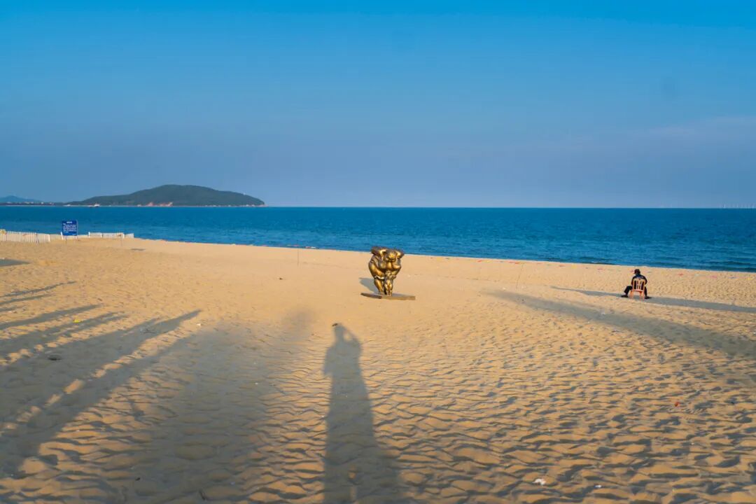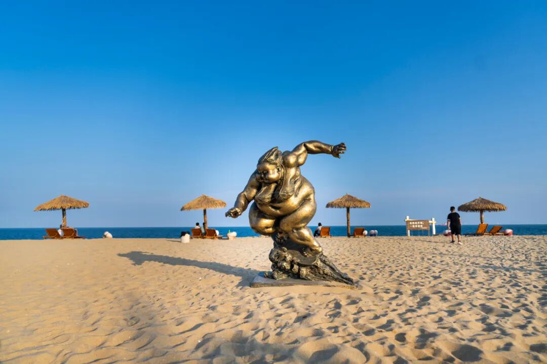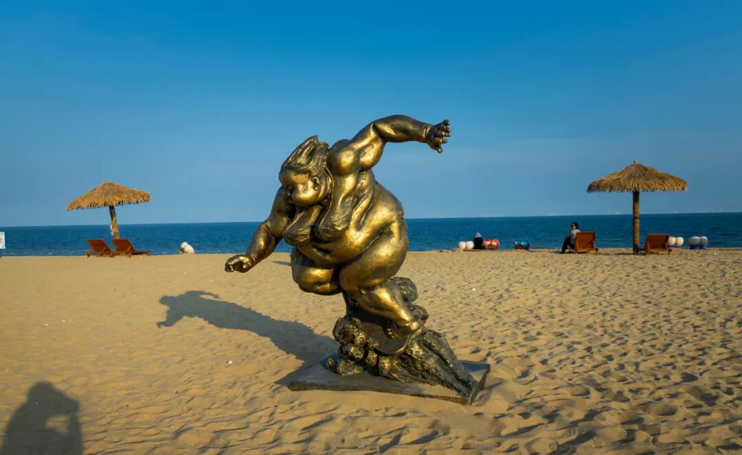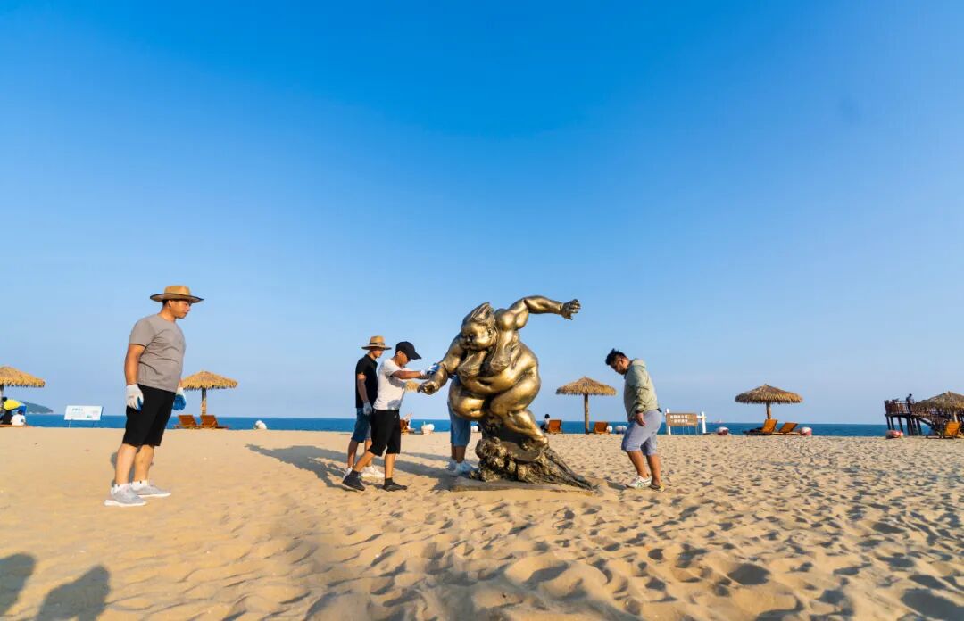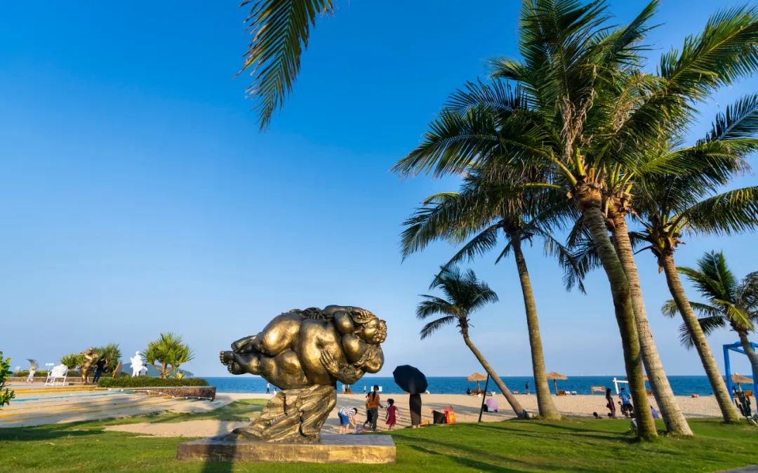 天蓝海碧,浪花舒卷,漫步于月亮湾,阵阵海风拂面,“肥女”与海景相映成趣,美不胜收。目前,雕塑作品已就位,期待您的到来!
