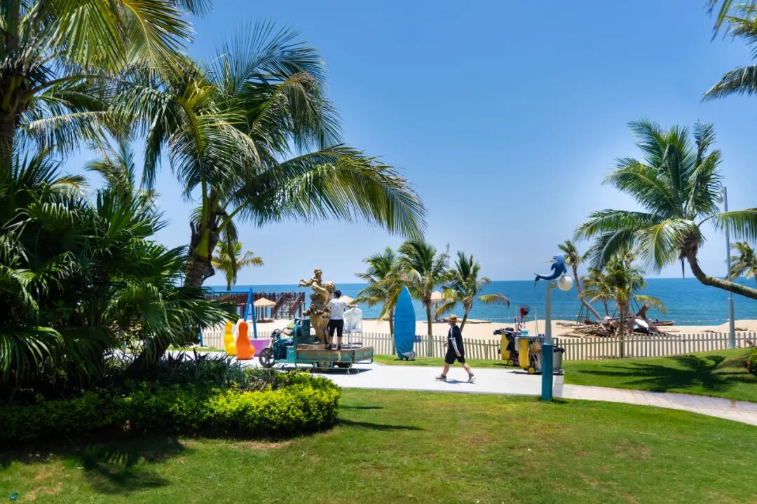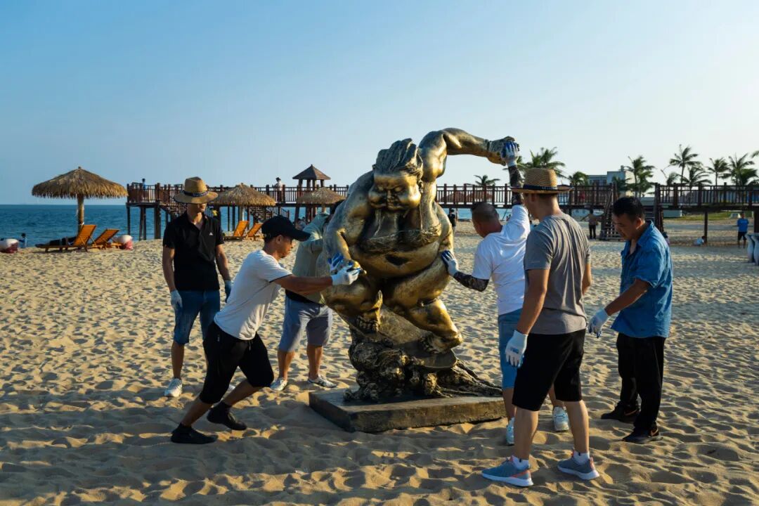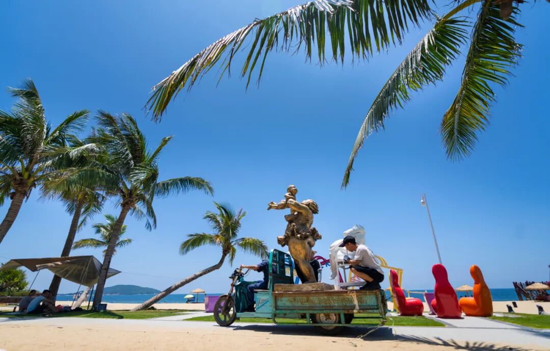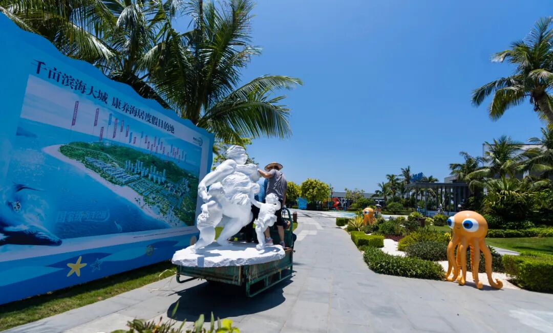 天蓝海碧,浪花舒卷,漫步于月亮湾,阵阵海风拂面,“肥女”与海景相映成趣,美不胜收。目前,雕塑作品已就位,期待您的到来!