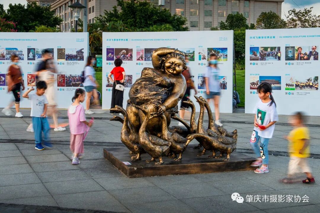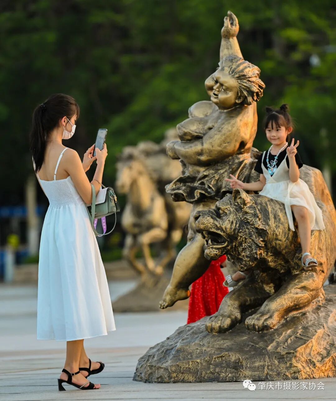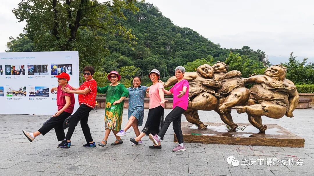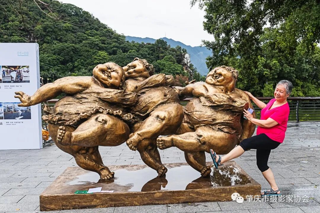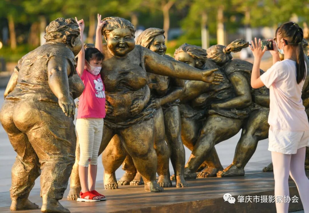 许鸿飞老师带着他的富有艺术冲击力的“肥女”来到肇庆七星岩,引发公众的好奇与关注。她们的美感是”另类”的,在一个普遍以纤细修长,骨感苗条为美的时代,许鸿飞在雕塑创作中运用夸张与变形的手法,标新立异“以肥为美”,并赋予这些人物以“健康、从容、乐观、自信”的精神面貌。快乐幸福的“肥女”深受人们喜爱并吸引了大量市民前来观赏打卡留影。