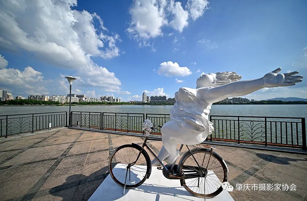 在风景如画的宝环绿道,《岭南之春》,飞身骑车“放飞梦想”的感觉,好像自己年轻时也曾经历过,只不过让他凝固成了雕塑……