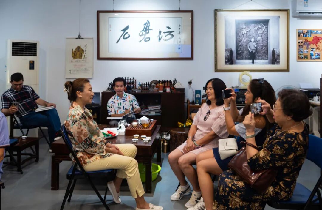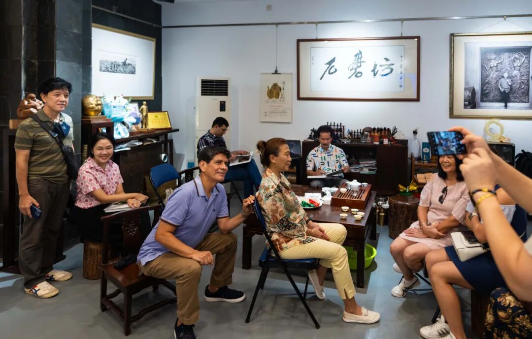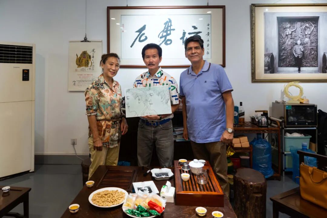 8月13日,巴拿马驻广州总领事Yamileth Ye Li(叶明明)、秘鲁驻广州总领事Ruben Espinoza(鲁本·埃斯皮诺萨)、伊朗驻广州总领事Hosseinali Darvishi Motevalli(达瑞西)、泰王国驻广州总领事Jiraporn Sudanich(吉拉蓬·素妲尼)及其家人、朋友到访全国政协委员、广州雕塑院院长许鸿飞工作室参观交流,并前往岭南印象园参观了“许鸿飞艺术空间”。