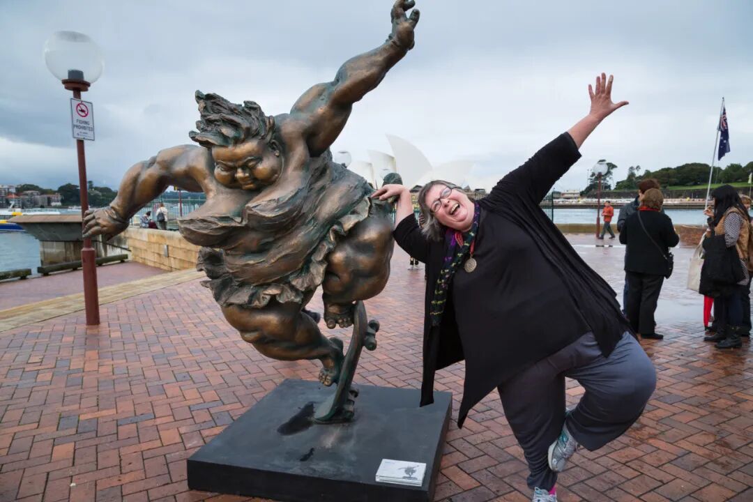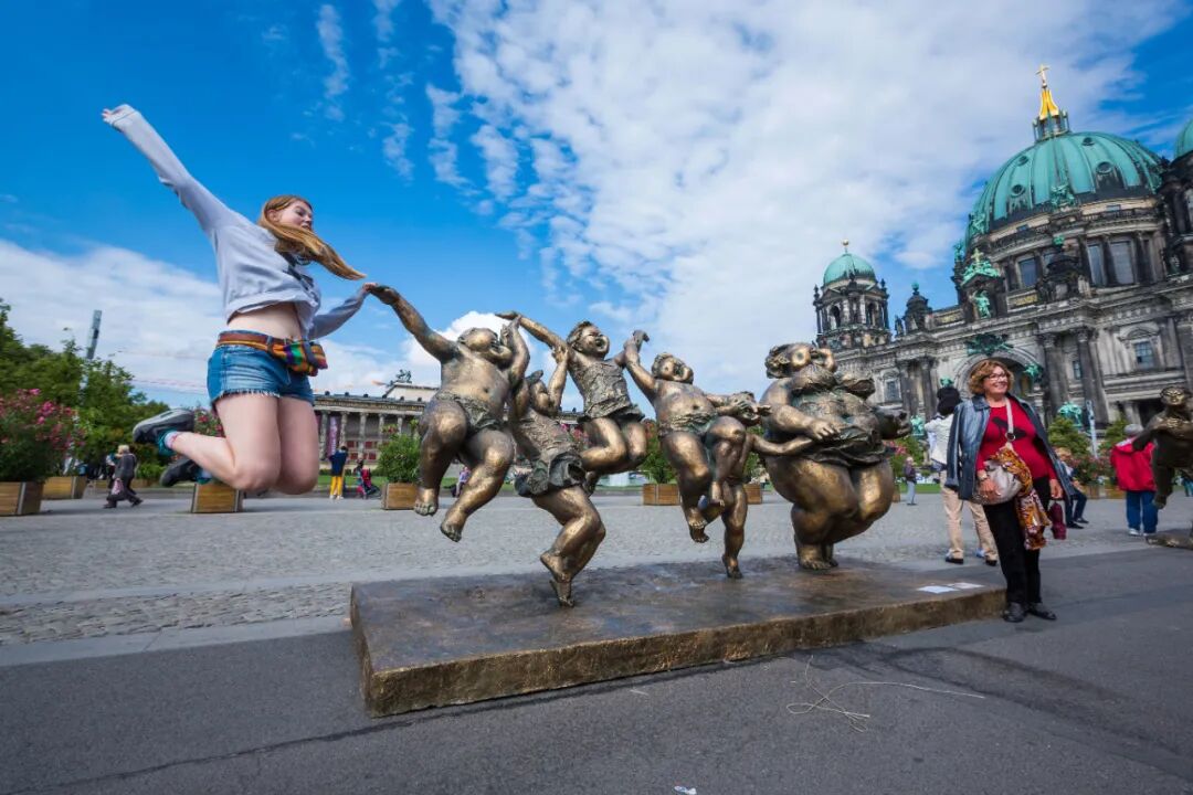 艺术家将雕塑带到户外阳光下,让他的雕塑作品不再局限于艺术爱好群体的高雅、冷静的欣赏,而让不同信仰、不同民族、不同语言区域下的社会各阶层民众加入到艺术的狂欢中,互动、对话。广场上,无论是老人、幼童、美女、壮汉,纷纷被“肥女”的欢乐自信所感染,在雕塑前合影、起舞、狂欢。