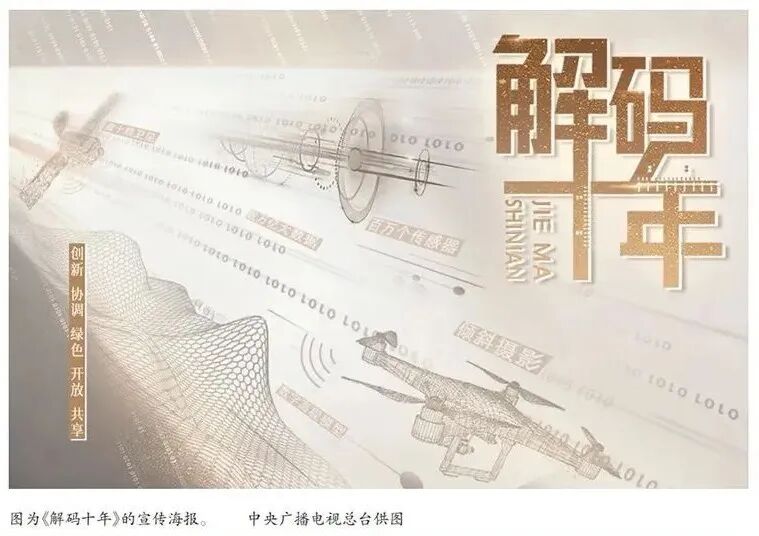 2022年8月9日,一档清风扑面、耳目一新的节目在《新闻联播》亮相。13集系列报道《解码十年》一经播出,即引发广泛关注和热评。作为总台迎接党的二十大的重磅作品,《解码十年》以“新发展理念”为魂,首次尝试“卫星视角+大数据调查+新闻故事”的报道方式,生动、立体地展现历史性成就和历史性变革,解开奋进路上的成就之码、力量之码、奋进之码、合作之码,让场景随着数字跃动、让人物伴着数字鲜活、让10年巨变可感可知可信可敬。节目实现融媒体传播,全网累计触达量超过60亿人次,获得社会各界一致好评。