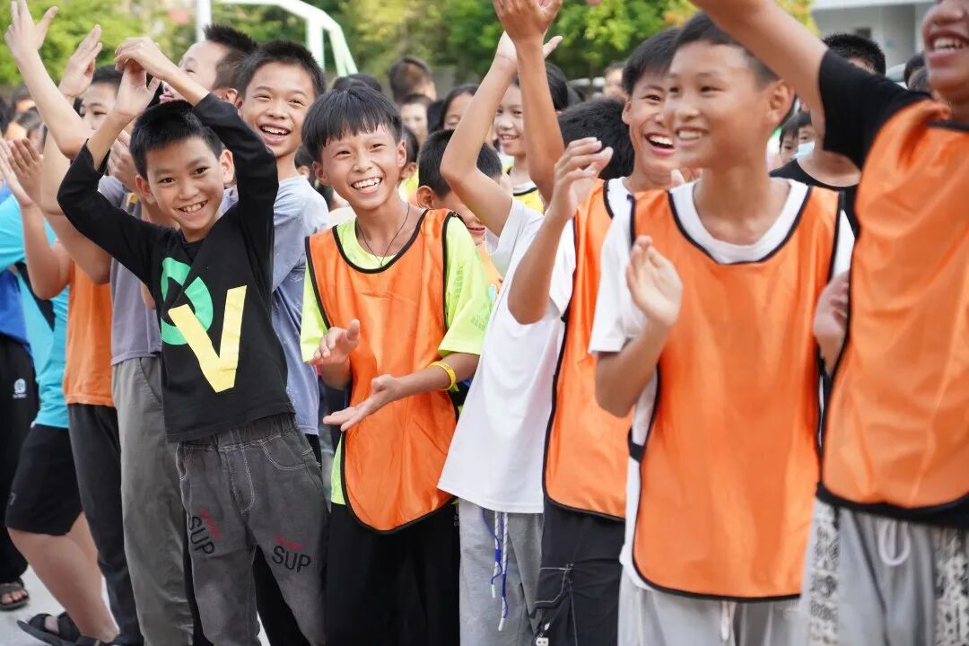 孩子们热烈的欢呼、敏捷的身手和高效的配合,让志愿者老师十分惊喜!一次一次的成功得分,引得周围的拉拉队们不由自主地大喊“加油”“加油”……