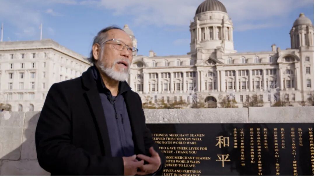图说:中国船员后人在利物浦中国船员纪念碑旁回忆往事