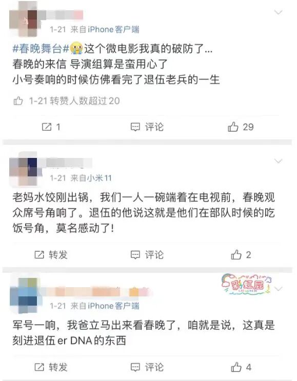 “三位老兵”共同完成了春晚和中国军人之间的一次浪漫链接。和平岁月、家国同庆的日子里,最可爱的人都隐藏在岁月静好之后,在春晚的喜庆祥和的节目呈现中,包裹着中国军人的血脉涌动。他们的身影投射到舞台上那些同样热爱春晚、关注春晚的百姓歌手身上,他们是最真实的存在。一声军号,巧妙完成了从梦境到现实的转换。