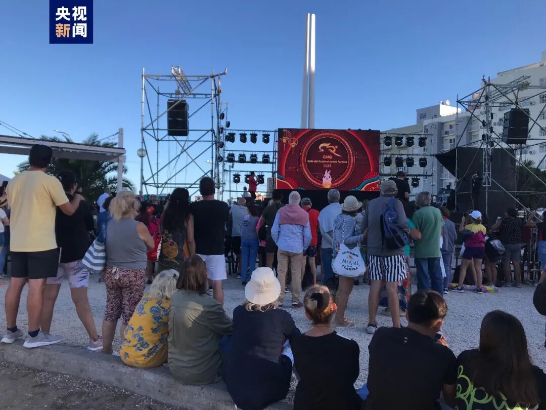 活动中,现场循环播放了总台2023年兔年元宵晚会宣传片,当地民众纷纷驻足观看,一次次把灯会的欢乐气氛推向高潮。近万名当地居民观看了舞狮、舞龙、功夫和中国传统歌舞等节目,活动中还有投放孔明灯和无人机灯光秀等环节。