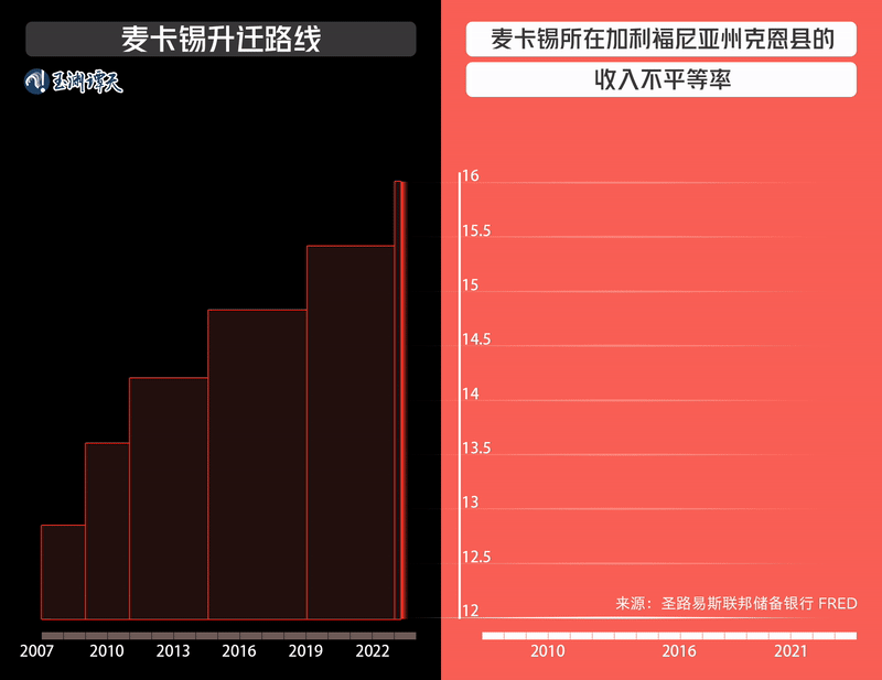 麦卡锡所在的选区,是美国收入最不平等的地区之一,麦卡锡的官越做越大,但这一问题,不仅没有得到解决,还愈发严重。