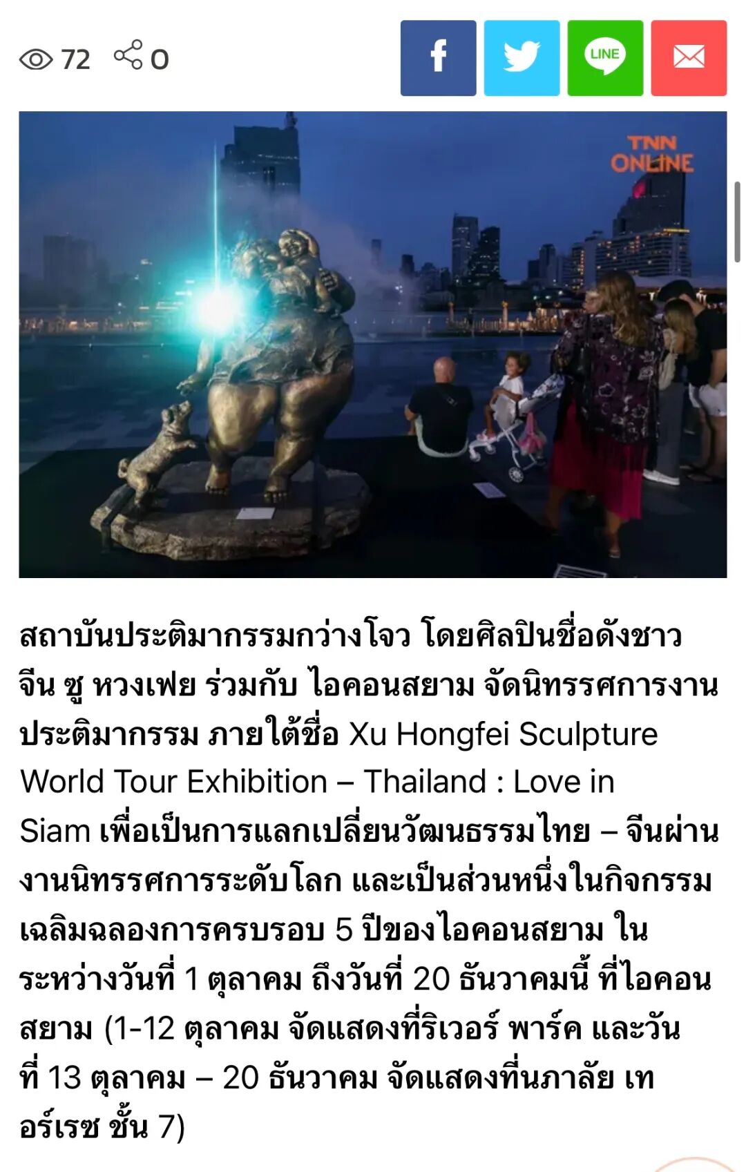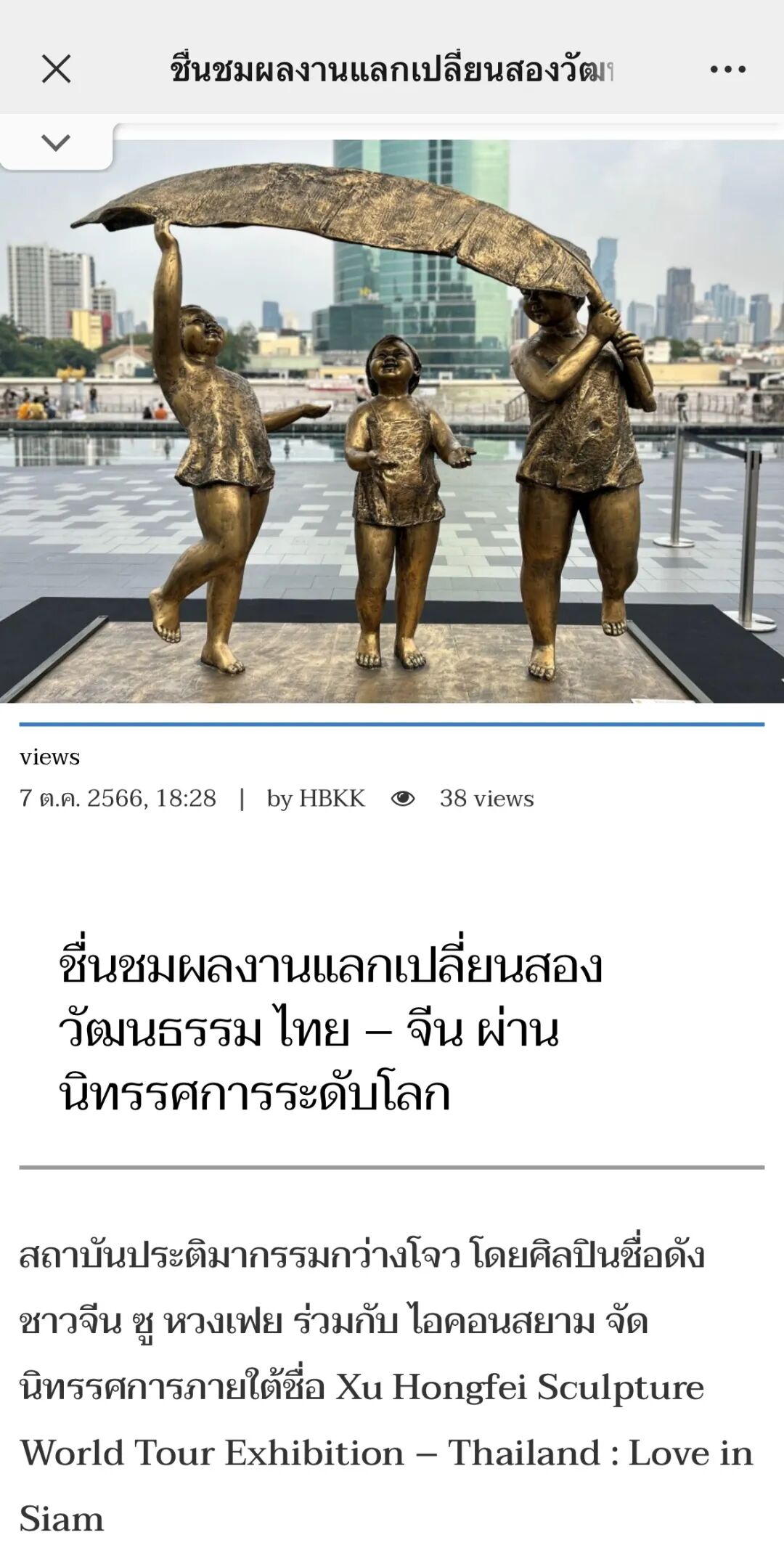 “爱在暹罗——许鸿飞雕塑世界巡展·泰国站”自10月5日开幕以来,引起了广泛关注,前来参观的游客络绎不绝,成为了近日泰国的热门新闻。