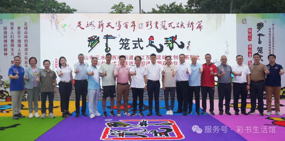 广东省足球协会副主席周穗安,广东省足球协会副主席、中国女足名宿赵利红,中国男足名宿王惠良、胡志军,中国象棋协会副主席王志强,粤港澳合作促进会常务理事余小波,佛山市教育局副局长傅为贵,市文广旅体局二级调研员张远征,三水区委常委、组织部部长赵仕韧,三水区委常委、宣传部部长王孝勇,西南街道党工委副书记、办事处主任徐仲辉,中国彩书创始人何柏俊,广东万城建设总经理肖俞等领导嘉宾亲临现场,共同见证首批14个融合彩书艺术与国学元素的彩书笼式足球场正式投入使用。活动现场,广东省足协授予西南街道“彩书笼式足球示范基地”牌匾,这标志着有百年足球历史的西南街道在足球创新发展方面迈出了关键一步。