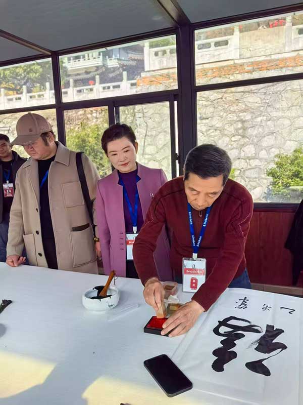 专程前来的美国分院院长缪培仁先生在席间感慨,将简道长比作历史上茅山”山中宰相”(南朝齐梁时期的著名道士、医药学家、文学家陶弘景) 这一美誉,赞誉其虽居山林却心怀天下艺文,默默守护着这片艺术园地。