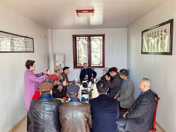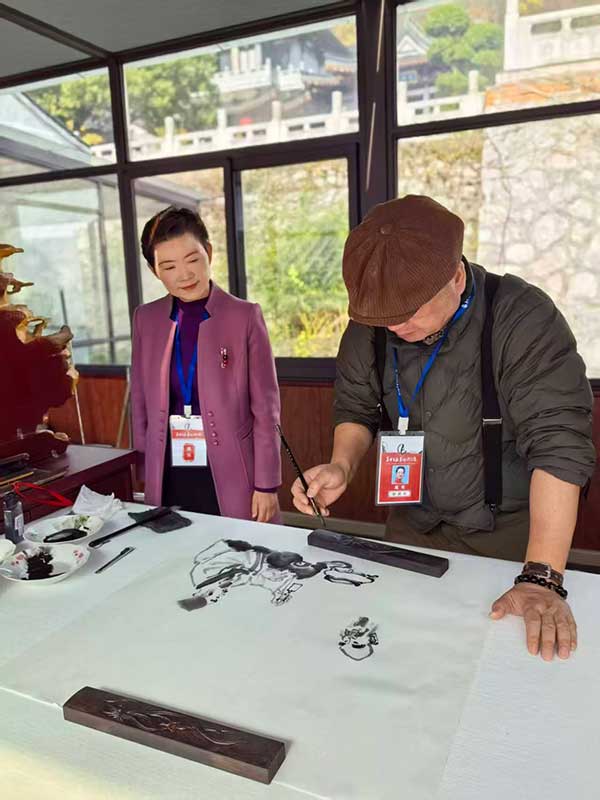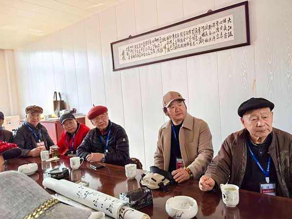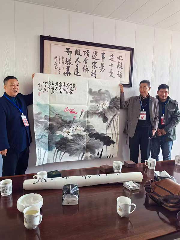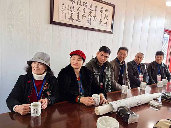 当日与会者包括简祖洪、卢南英、缪国济、缪培仁、徐爱红、周年、杨德金、王国祝、王深世、李祥林、张拯民、马学春、戴倚山、戌三云、陆建斌等画院同仁。兴之所致,大家即席挥毫,在宣纸上留下了这个温暖冬日的艺术印记。活动尾声,在简道长引领下,众人参观了元符万宁宫,在巍然屹立的老子像前,结束了这次充实而愉快的年会。