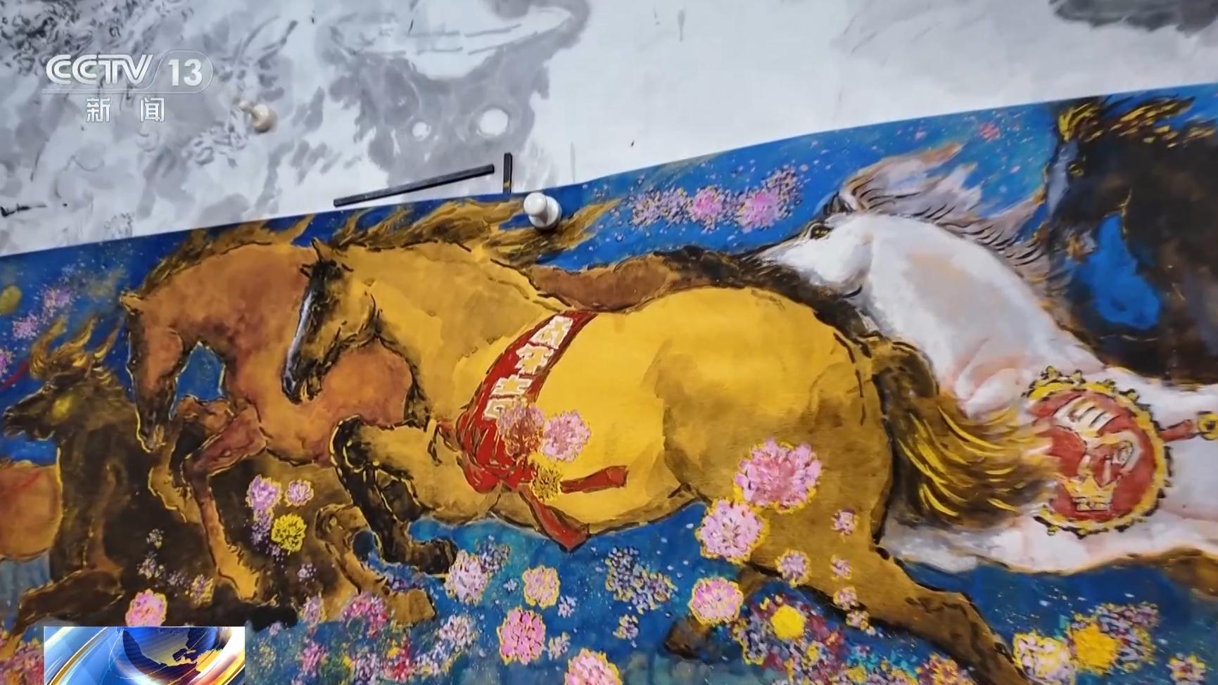 上海交通大学人文学院教授、国画家 戴敦邦:《天马行空》就表示这个马的奔腾就是像(在)天空上一样前进,这是象征着一种祝福。我们的国家、我们的人民就是像马一样奔腾,奔腾四海、辉煌发达。