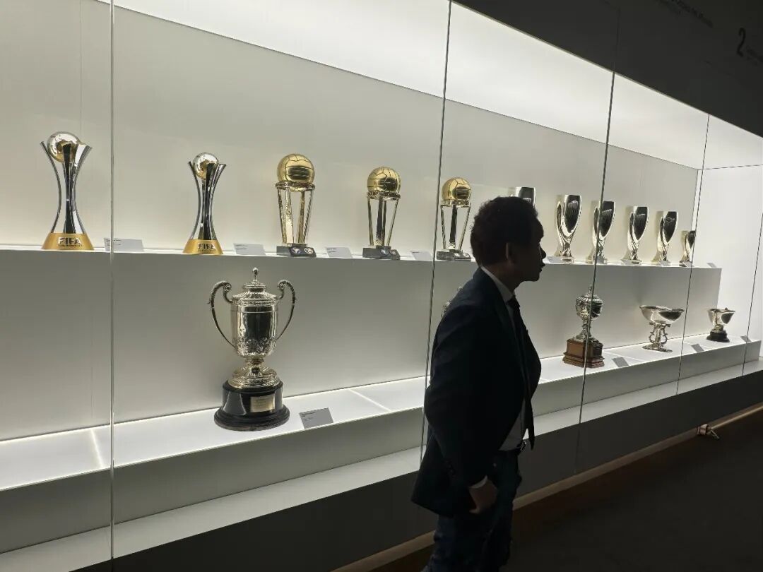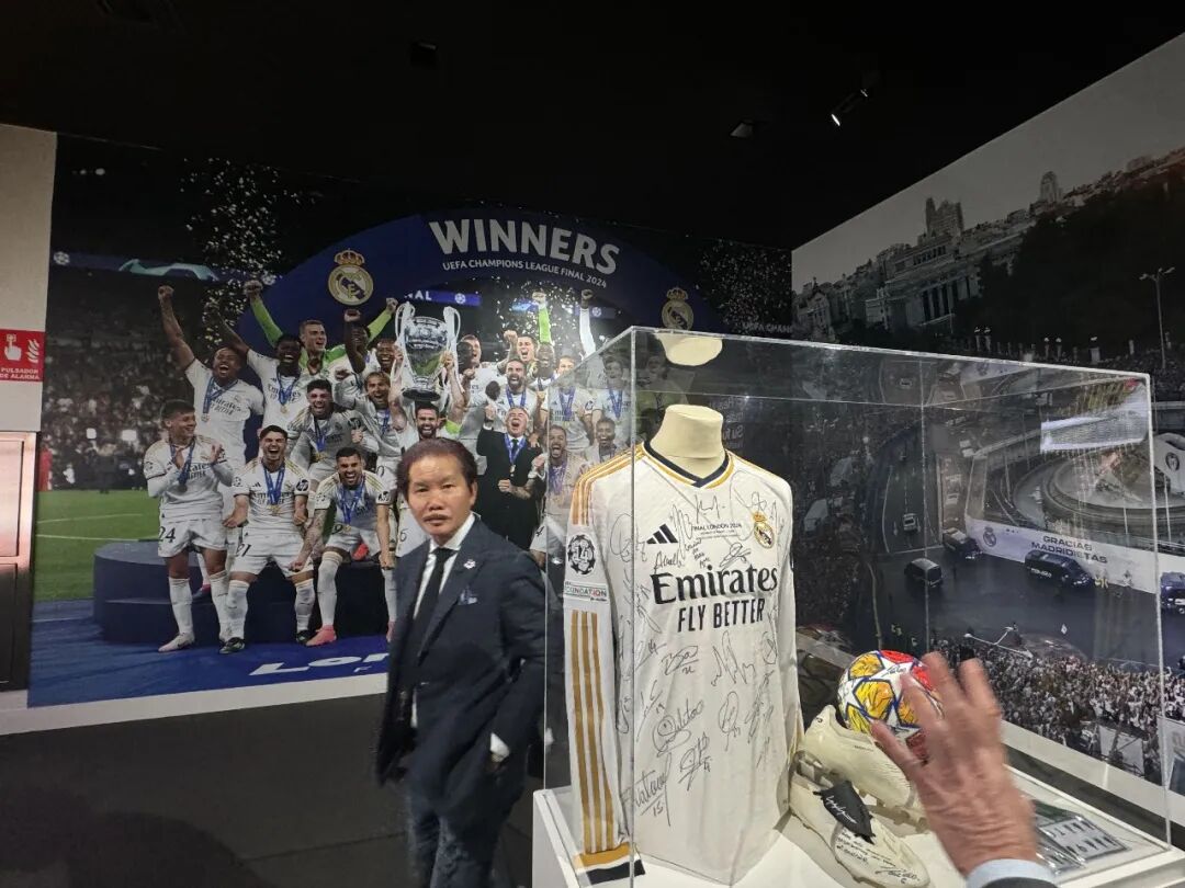 荣誉室更令人屏息,无数奖杯、纪念物在灯光下熠熠生辉,它们是凝固的时光,是巅峰瞬间的结晶,是皇马百年硬核的荣耀日记。