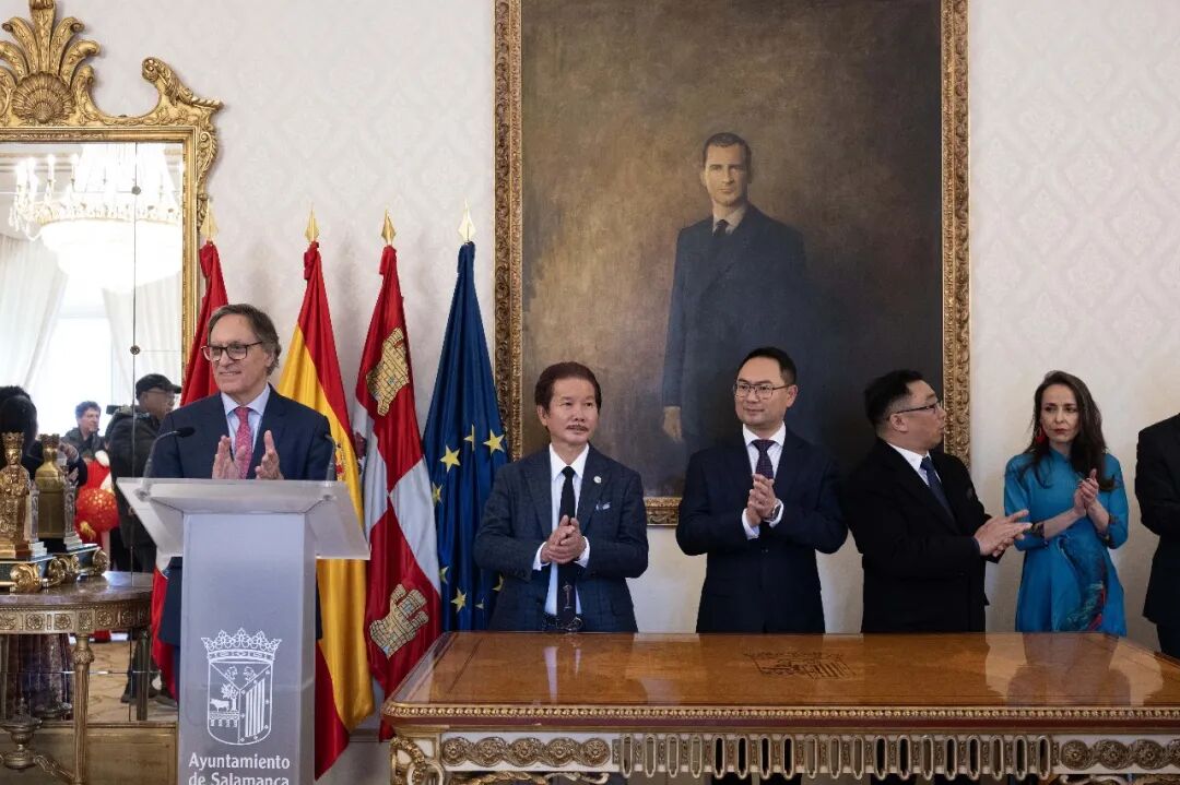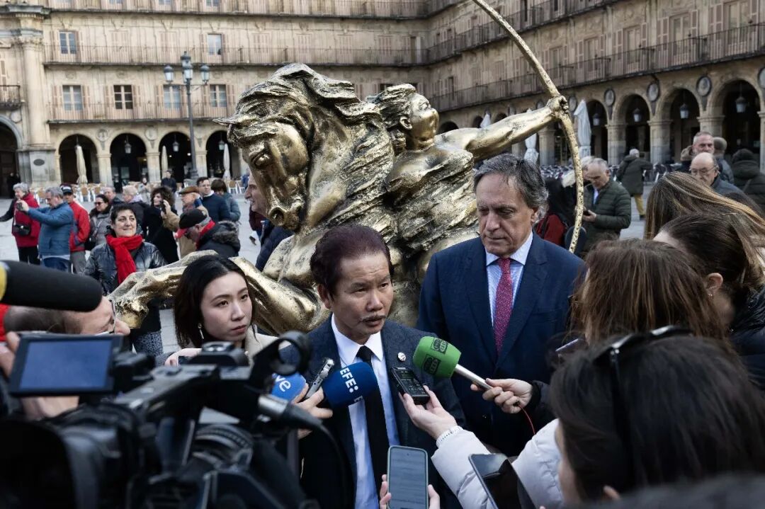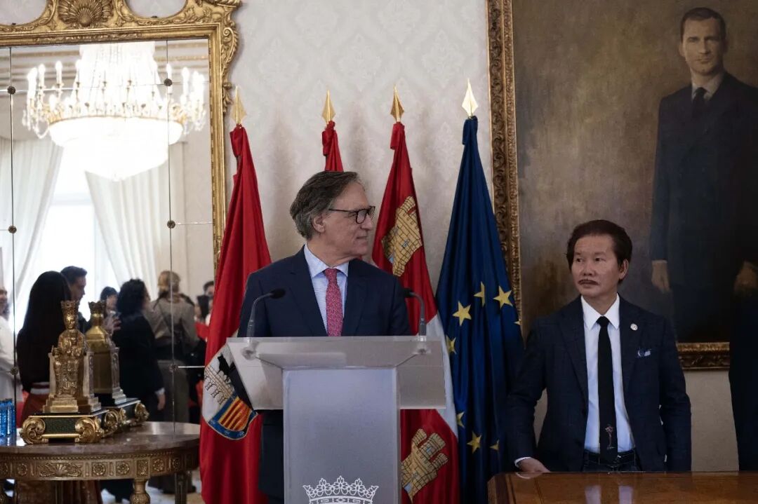 市长卡洛斯·加西亚·卡巴约动情致辞:他任职八年,许鸿飞的展览便陪伴了八年。春节不曾缺席,艺术从未中断。这座城市因许鸿飞,架起了中西文化的桥梁。他将萨拉曼卡视为常年展地,是城市的荣光;而春节的画面,更登上中国《参考消息》,让世界看见这场跨越山海的相逢。